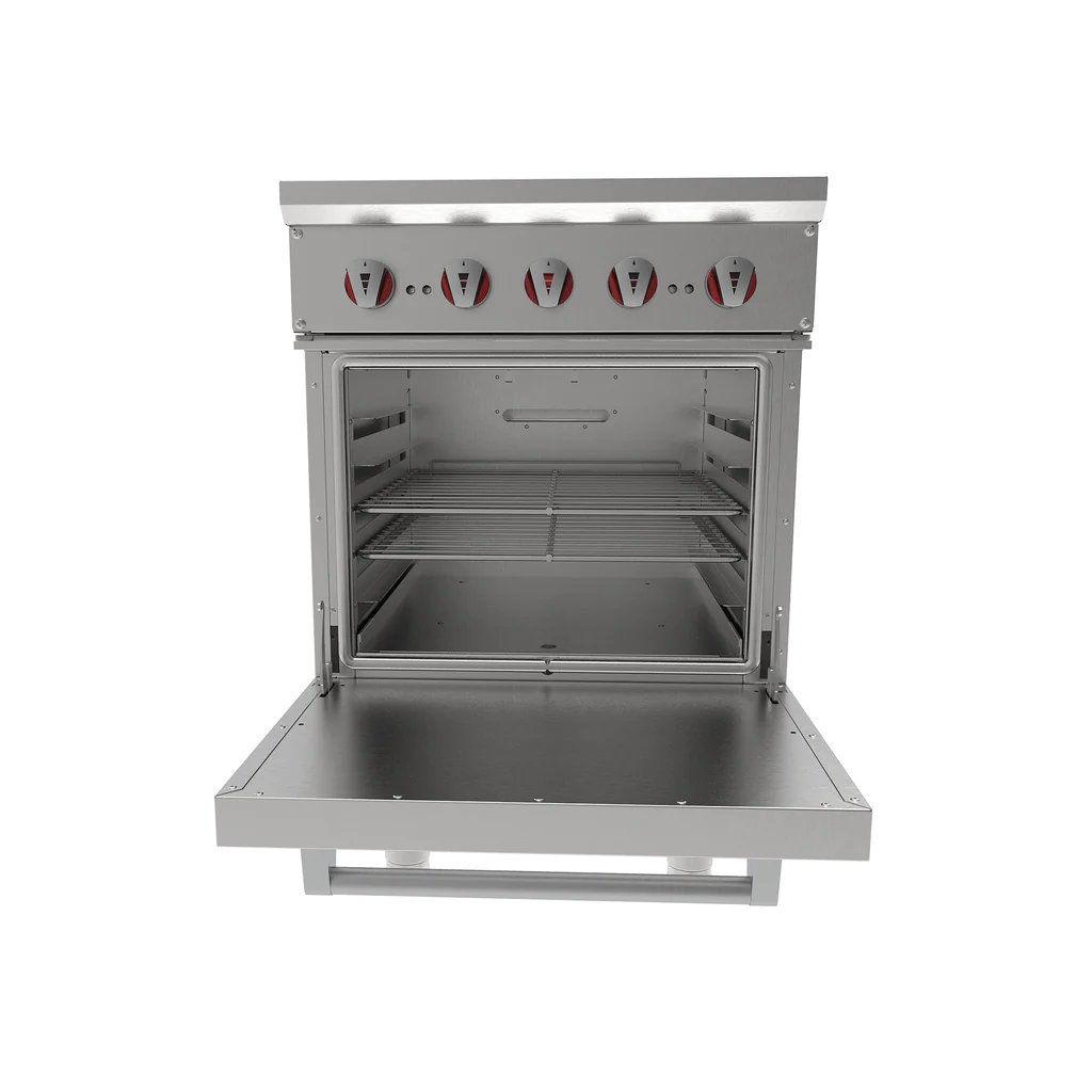 • Termostato de seguridad para el Horno. • Incluye kit de espreas para conversión de Gas. • Puerta de Horno con bisagras. • Gasket de fibra de vidrio para evitar pérdidas de calor en Horno.