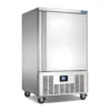 Interior y exterior fabricado en acero inoxidable. Con capacidad de 10 charolas gastronómicas (40 kg) para trabajar en una temperatura ambiente hasta de 32°C. Temperatura ajustable de -40 a +3°C con control de temperatura digital con 4 programas preestablecidos. Compresor autocontenido. Una puerta abatible. Deshielo automático. Refrigerante R404A. Para trabajar a 110 V/60 Hz.