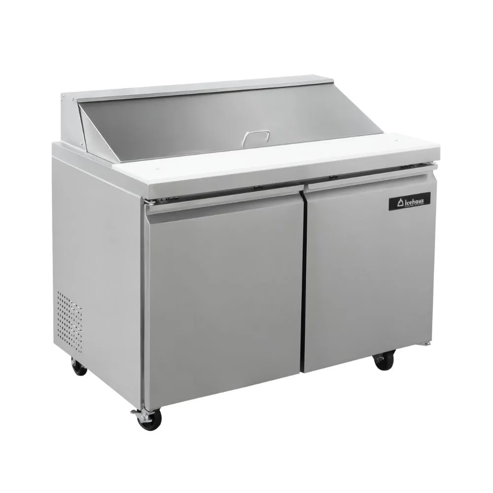 Acelerar el tiempo de preparación sin perder la frescura de tus ingredientes es el secreto de las cocinas más rentables. La Mesa para ensaladas ICEHAUS ME-2P-SS-01 con capacidad de 357 litros es el equipo de refrigeración estratégica que transformará tu línea de ensaladas, sándwiches o pizzas. En Ikonix sabemos que tener los insumos fríos y al alcance de la mano no es un lujo, es una necesidad operativa. Este equipo de dos puertas combina una estación de preparación ergonómica en la parte superior con un amplio gabinete de almacenamiento refrigerado en la parte inferior, permitiendo que tu personal despache comandas de manera continua y sin interrupciones durante las horas pico.