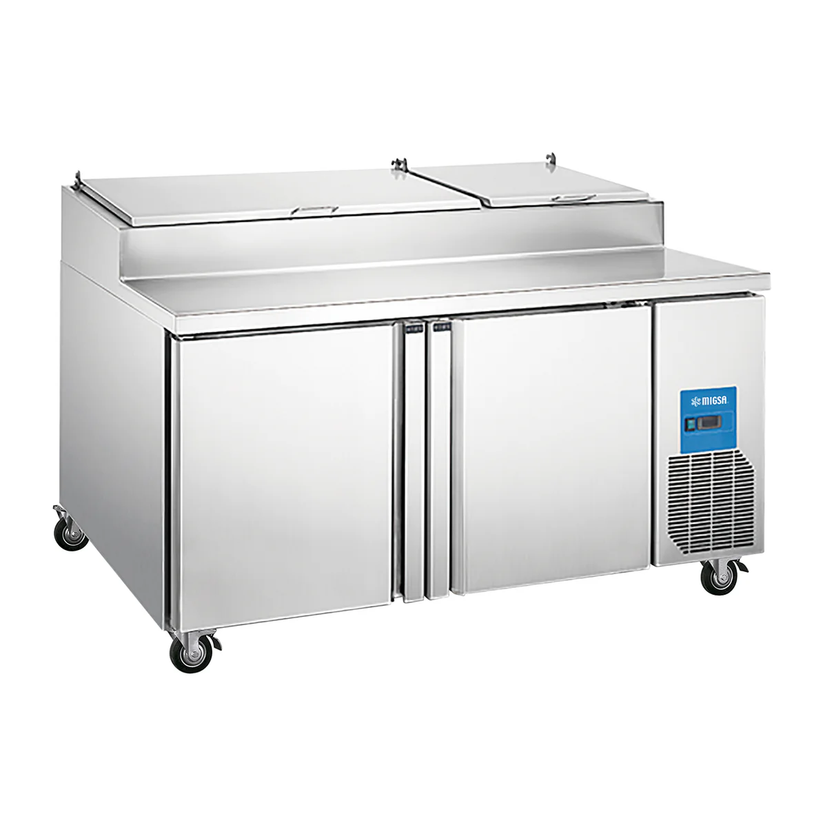 • Sección alta con tapa abatible y mesa de trabajo a todo el frente para preparación.
