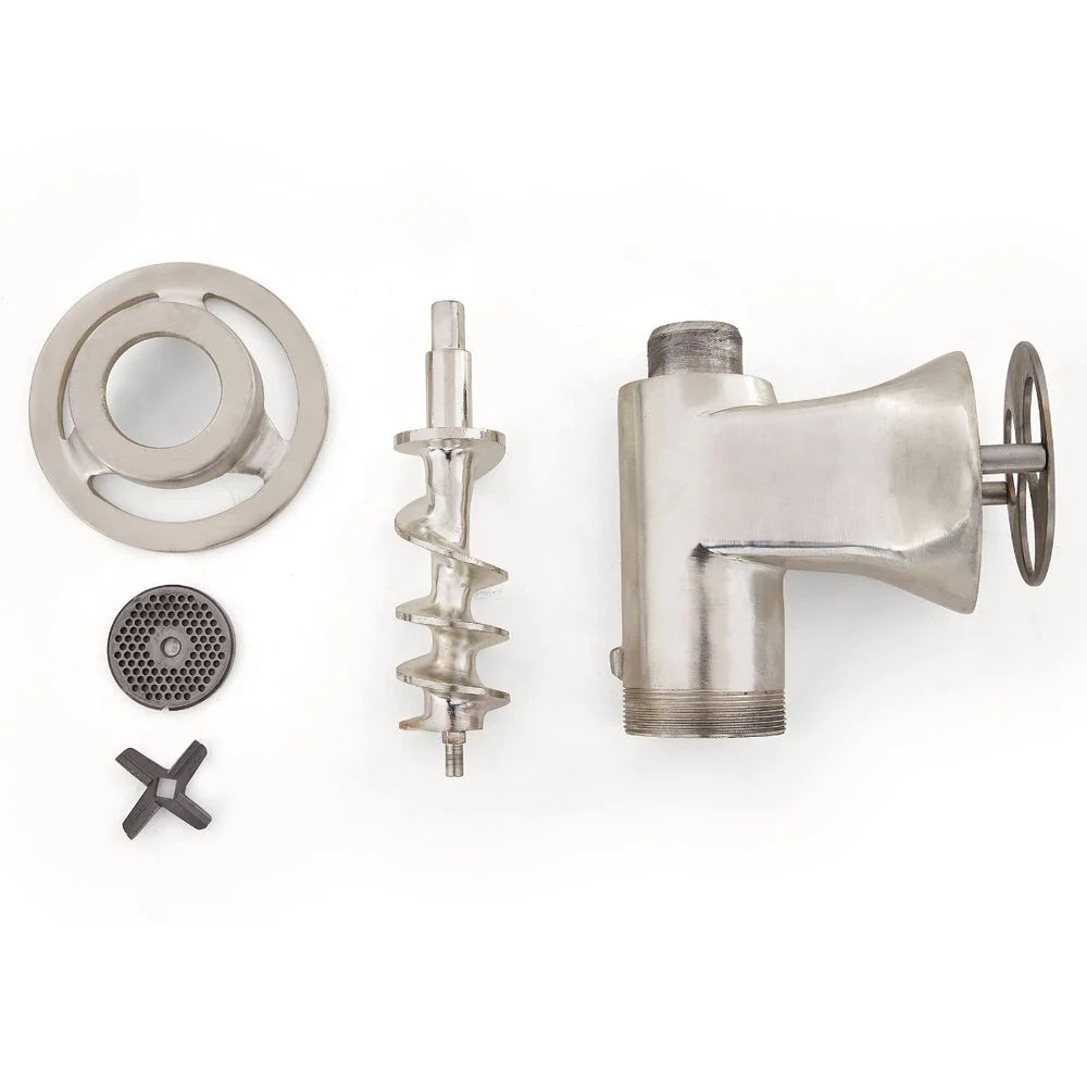 Molino para carne para mesa, con capacidad de procesamiento de 13.5 Kg por minuto con motor de 2 HP, con cedazos y navajas intercambiables para diferentes aplicaciones