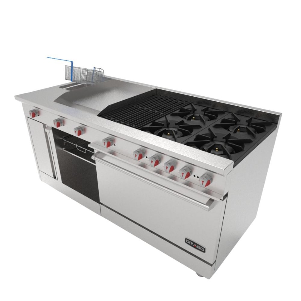 • Nuevo diseño en perillas CSA uso comercial. • 4 Patas Niveladoras Robustas de acero inoxidable. • Válvulas de Gas certificadas por CSA. • Termostato de seguridad para el Horno. • Puerta de Horno con bisagras. • Equipo fabricado en Acero Inoxidable 430 con Acabado p3 con refuerzos y soporteria fabricada en Lámina Aluminizada.• Incluye kit de espreas para conversión de Gas.
