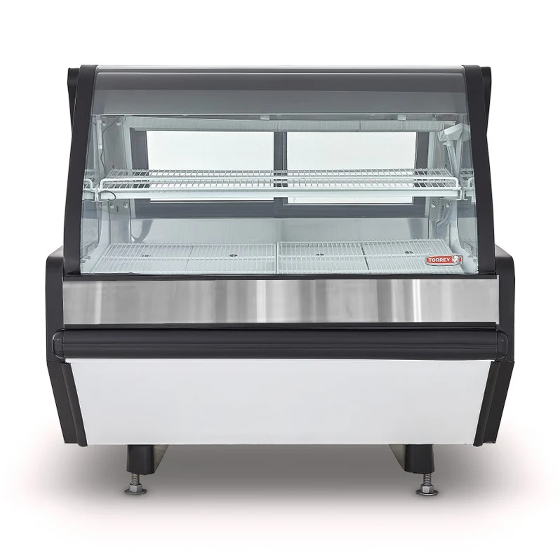 Vitrina carnicera modular de 1.3 m de largo color blanco, con puertas posteriores de vidrio, almacén inferior para congelamiento, ideal para grandes cadenas de autoservicios y carnicerías grandes.